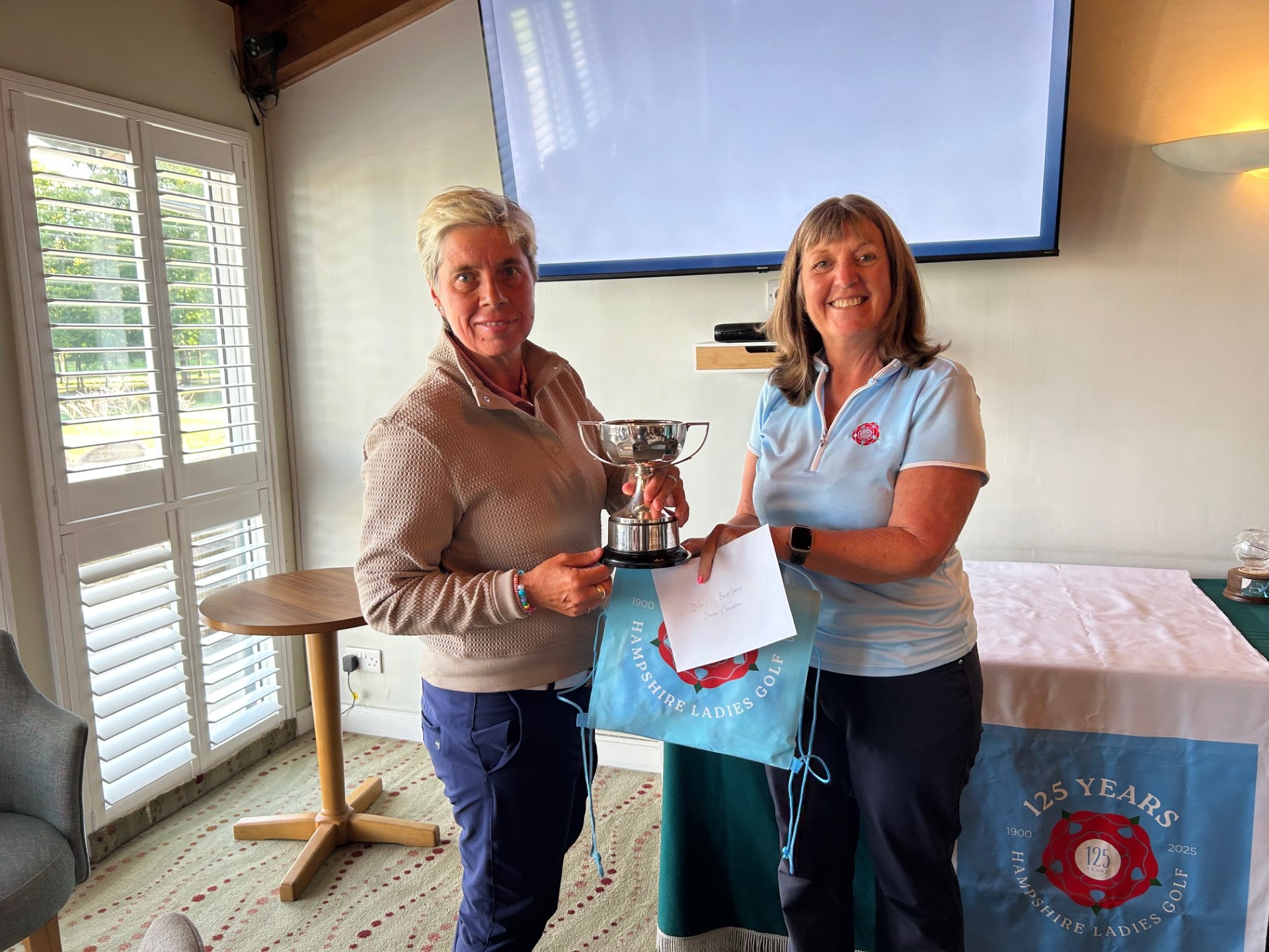 Seniors Champion Kerry Smith and Division 1 Winners Seniors Division 2 Sara Mitchell and Division 2 Winners